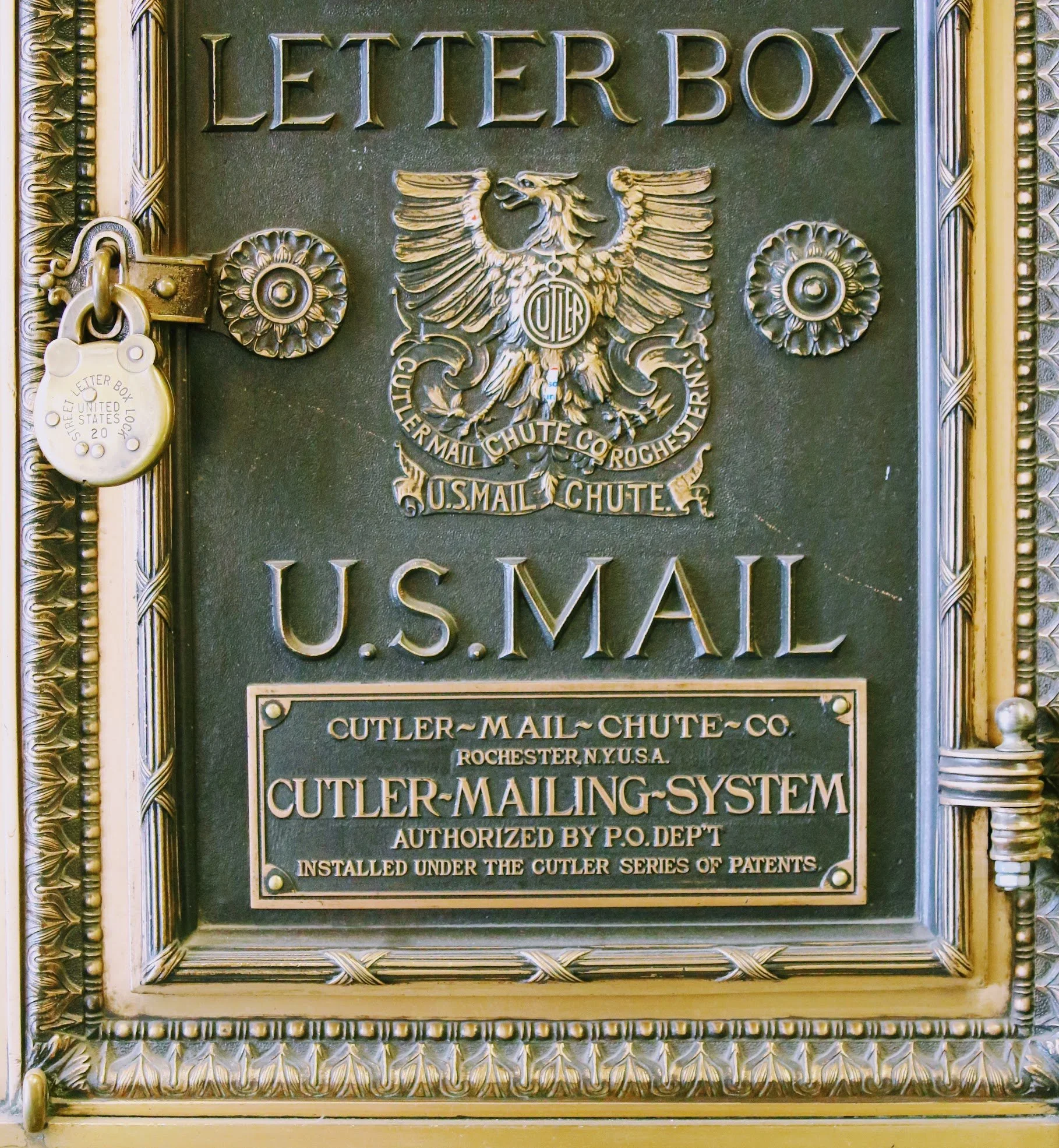 I've always been interested in philately, vintage mail boxes and the history of the postal service. While exploring older buildings in Houston, I was awed by the ornately detailed U.S. Mail boxes that were prominently featured in several lobbies. Each one was unique and one of a kind. I noted that they were all made by a single company: the Cutler Mail Chute Company. After doing some research later that evening, I discovered quite a fascinating history behind these beautifully detailed boxes.